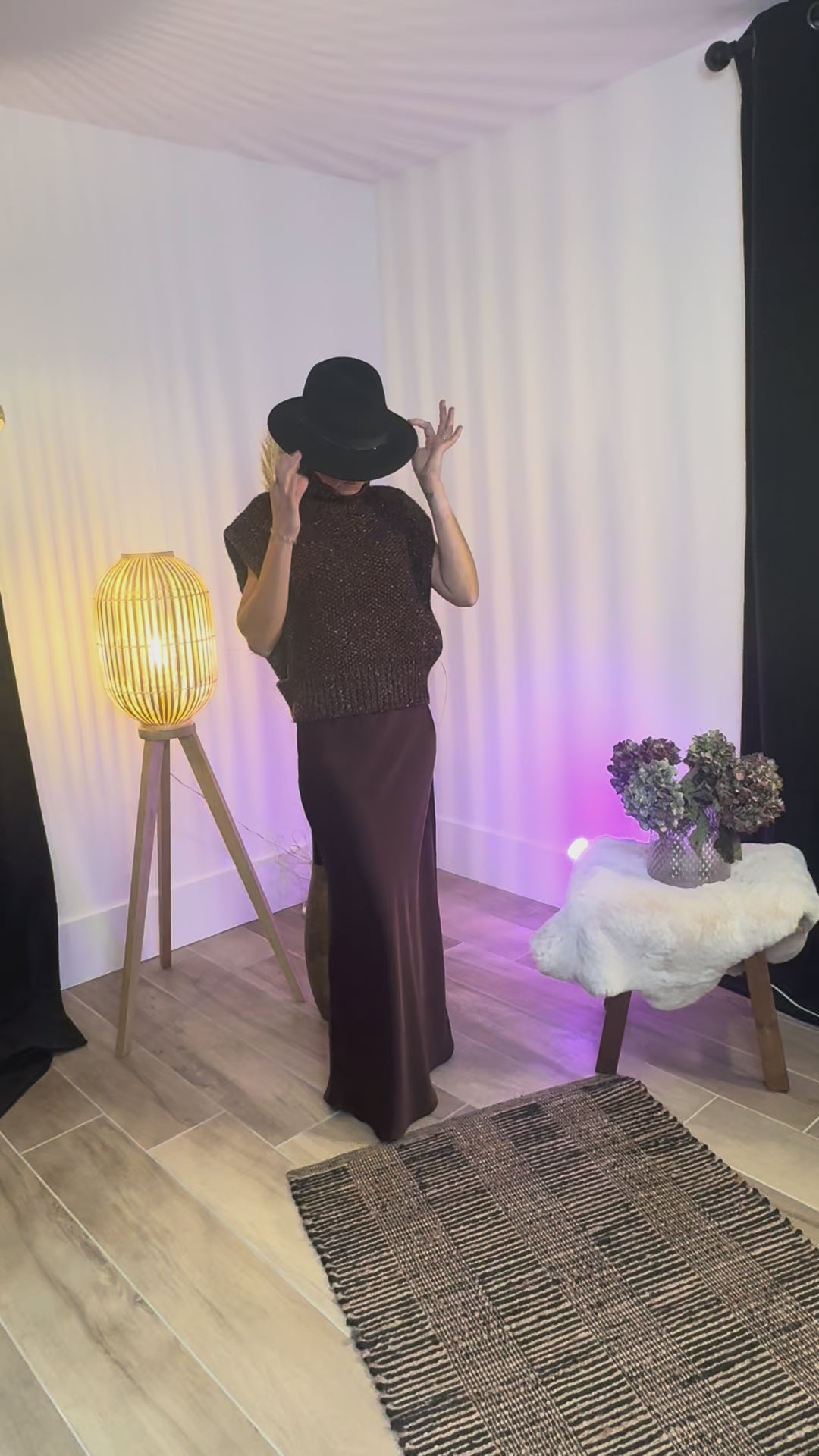 Découvrez le pull sans manche chiné chocolat Sonia, un INCONTOURNABLE sophistiqué qui apporte une touche de caractère à vos tenues. Confectionnée en maille. Sa coupe droite et son col cheminé seront parfaits pour toutes occasions.